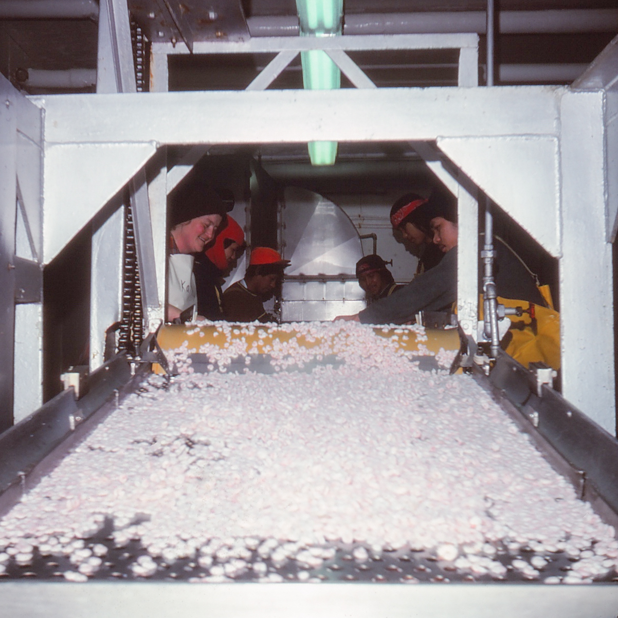 1977 SQUAW HARBOR PROCESSING PINK SHRIMP HAND CLEANING BEFORE CANNING