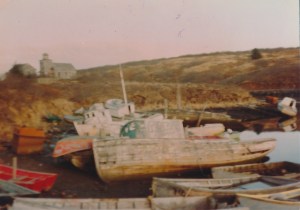 1979 SAND POINT JUNKED BOATS WITH RUSSIAN ORTHADOX CHURCH IN BACKGROUND